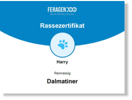 Durch das Labor Embark in den USA, sowie durch das Labor FERAGEN, wurde die 100 %ige Reinrassigkeit aller Importtiere bestätigt