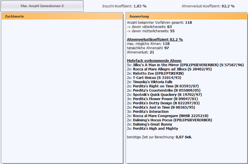 Pedigree. Dafür müssen zuerst alle bekannten Ahnen eingegeben werden, die bei sorgfältiger Recherche einige hundert Namen beinhalten kann.